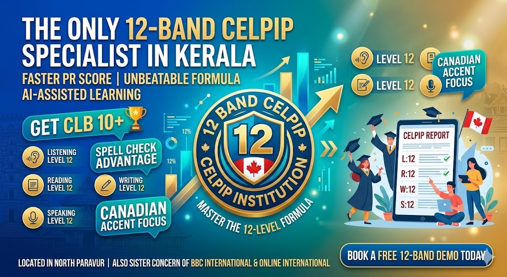 If your goal is Canadian Permanent Residency (PR), here is why the 12-Band CELPIP Formula is now the preferred choice for Kerala’s high achievers.