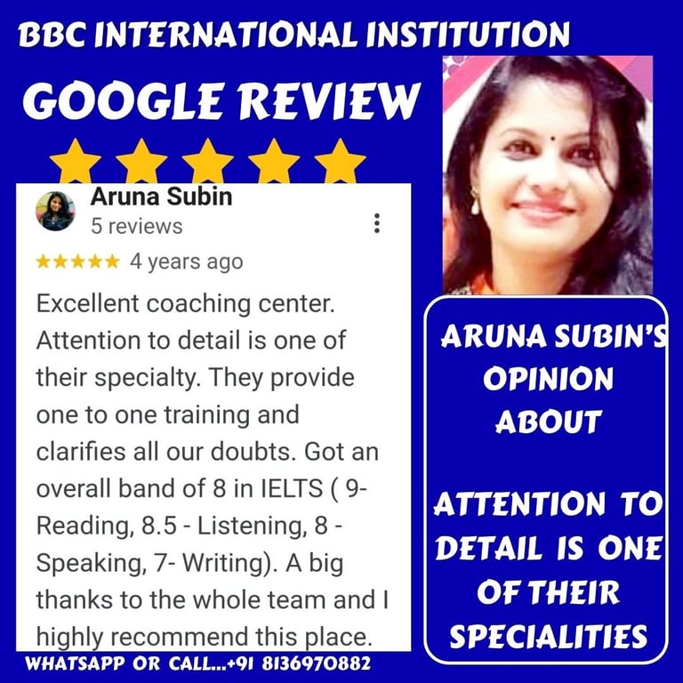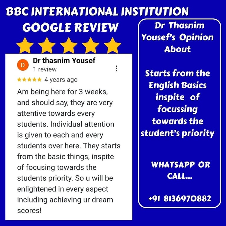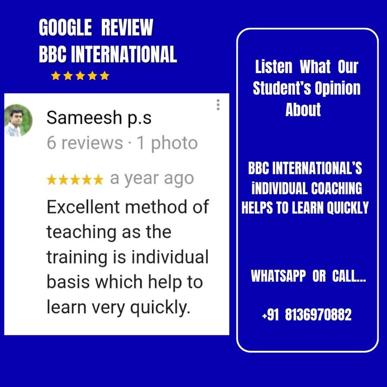 CLICK TO ZOOM EACH PICTURE TO READ GOOGLE REVIEWS OF OUR SISTER CONCERN - BBC INTERNATIONAL INSTITUTION