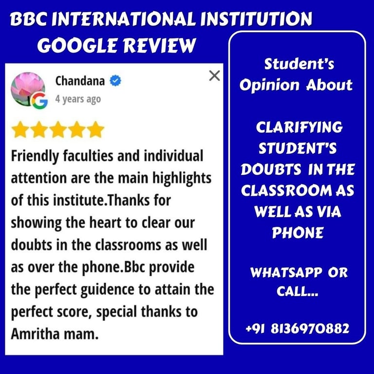 OUR SISTER CONCERN - BBC INTERNATIONAL INSTITUTION'S GOOGLE REVIEW SHOWS STUDENTS' FEEDBACK
